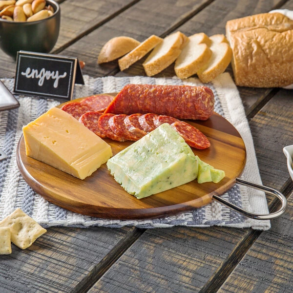 Tablecraft ACAMR10 Acacia Wood Round Display Board With Brushed Nickel Handle – 10″ X 5/8″